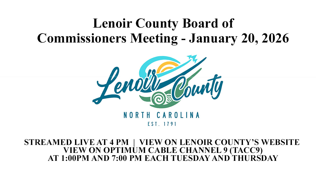 The public and news media can view the meeting via the Lenoir County website. If you have public comments and you are not able to attend the meeting, public comments for the agenda should be submitted to the link listed below no later than Friday, January 16, 2026 by 5:00 p.m. to Reekitta Deaver, Clerk to the Board of Commissioners at https://forms.gle/nq8XDcVCAgUXbR8A6.